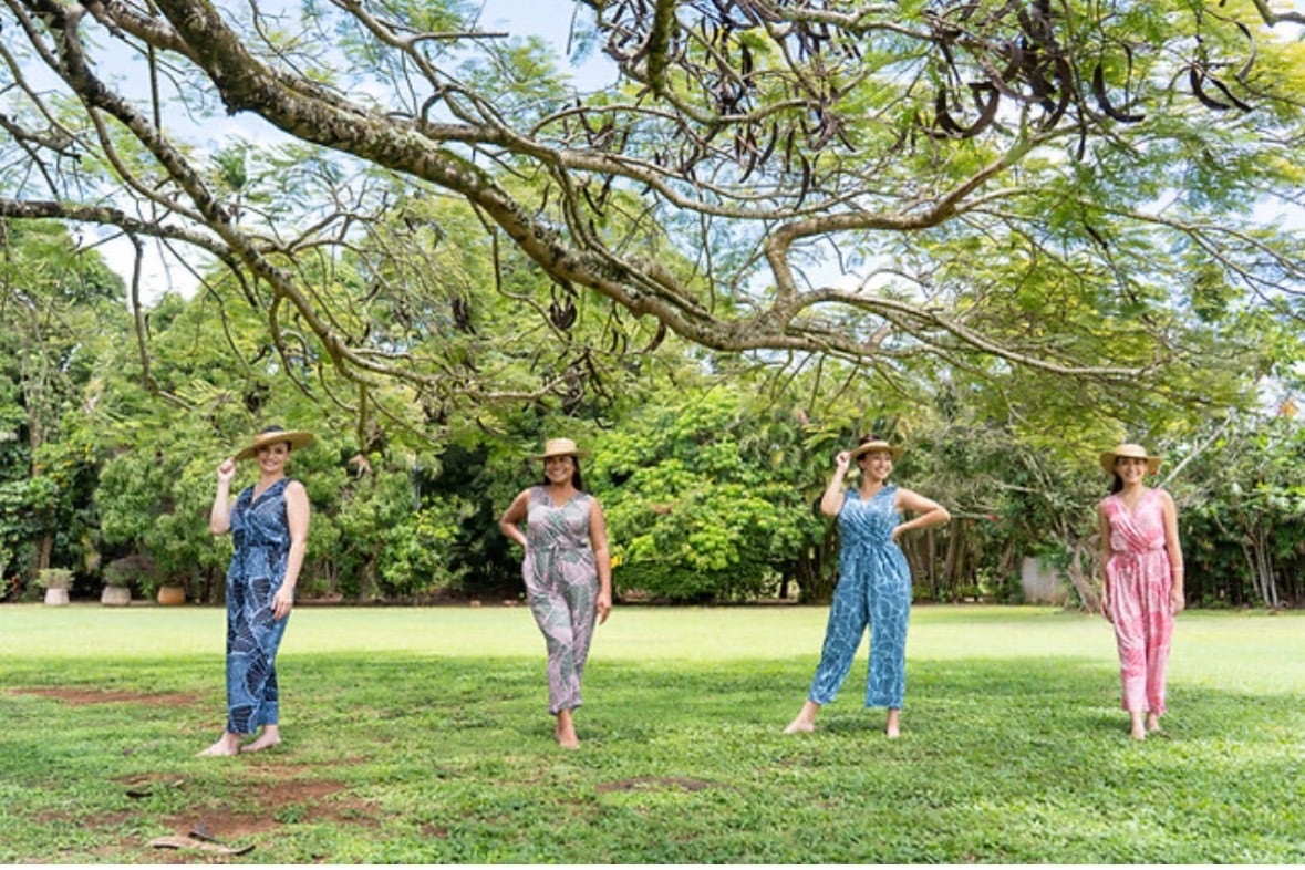 オールインワンタイプのカシュクールパンツスタイルで、トリプルリーフ柄がマラカイトグリーンとペールイエローの組み合わせで爽やかさと華やかさを演出します。このデザインは、日常のコーディネートに新たな魅力をプラスします。