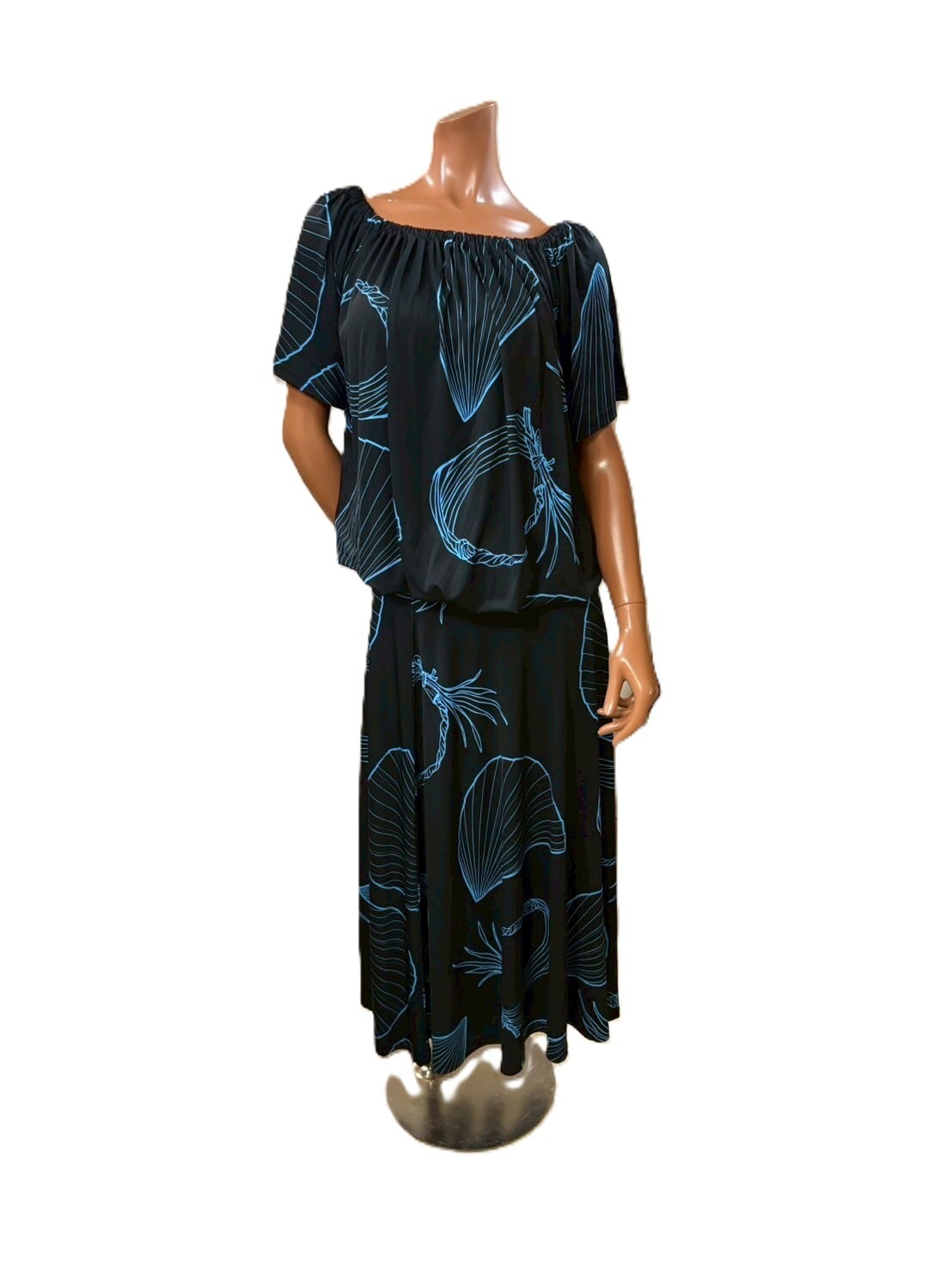 オフショルダースタイルで、肩を気にせずに安心して着用できる仕様に仕上げました。このトップスは、2WAYスカートと同柄でセットアップとしても楽しめるため、コーディネートの幅が広がります。クパ柄が施されたブラック×シアンブルーは、クールでありながら華やかさを演出し、どんなシーンにもマッチします。カジュアルなデニムやスカートと合わせることで、日常から特別な場面まで幅広くお楽しみいただけます。